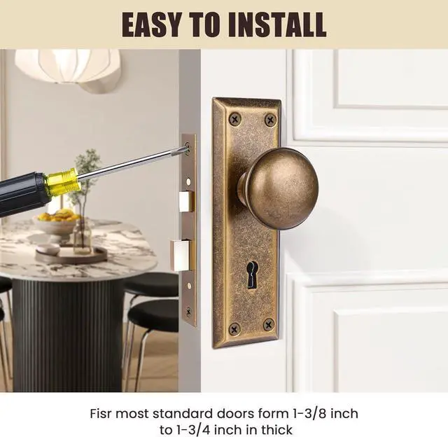 Our vintage door knob fits for door thickness from 1-3/8" to 1-3/4" (35-45mm), Please refer to the product size chart before purchasing