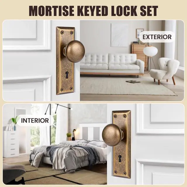 This mortise style door lock set can be used as a privacy lock for bedrooms, bathrooms and other interior doors. Can be unlocked with key from the inside and outside