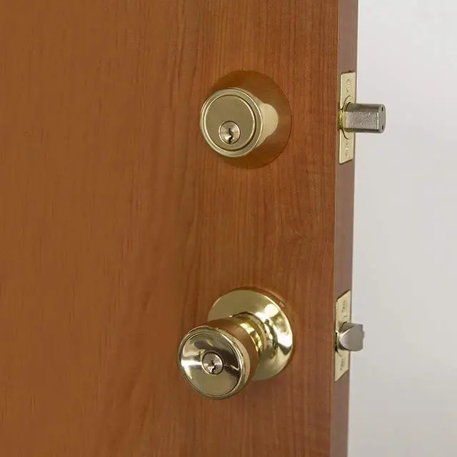 Entry Lock & deadbolt; operated by a key on the exterior and is by a turn-button knob on the interior