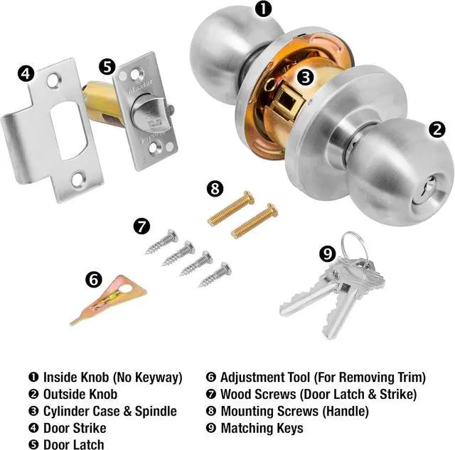 Operated by knob inside or key in outside knob, Outside knob is always locked. Inside knob is always unlocked