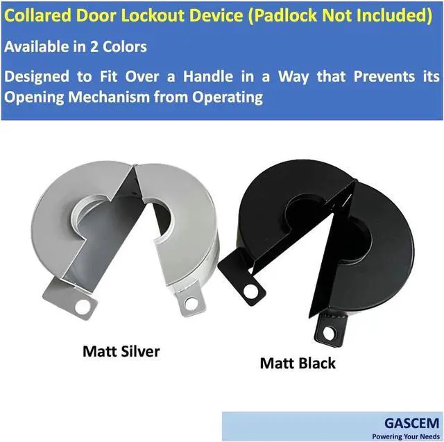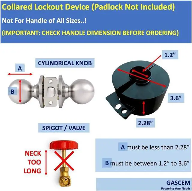 Gascem doorknob lockout device operates by disabling the turning feature of handles of certain design and dimension eg door knob. Designed like a clamshell, it snaps shut around a handle before locking up with a padlock (padlock not included). Can' t turn the door knob, access denied it is that simple! And it is also your door knob lock without drilling!