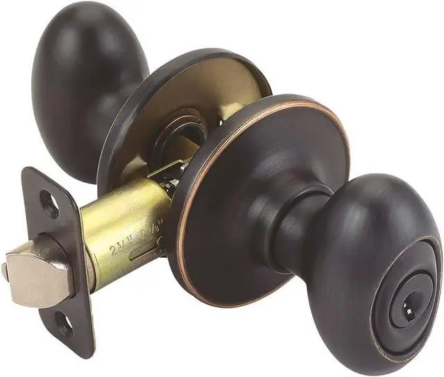 Entry Lock; operated by a key on the exterior and is by a turn-button knob on the interior.