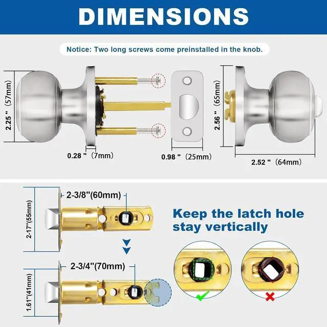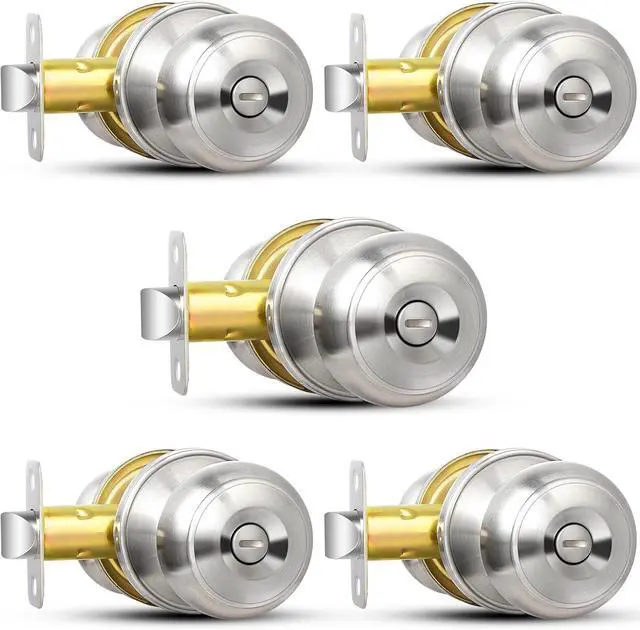 PREMIUM QUALITY: Heavy-duty door knob is made of premium quality stainless steel to guarantee rust-free in a high humidity environment. Conformed with ANSI Grade 3 Exceeds 200, 000 cyles and 5 pins brass tumbler cylinder; Solid Column security bolt for anti-sawing protection