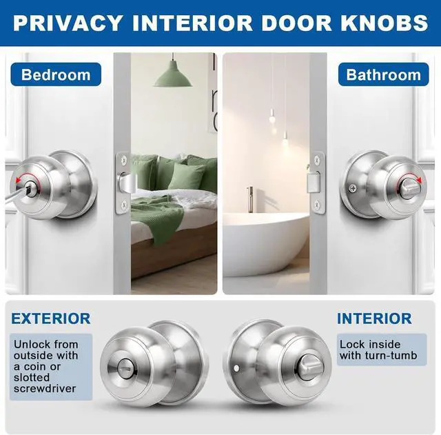 PRIVACY FUNCTION: The privacy door knobs can be locked by twisting the button inside and opened outside in case of emergency with a flat-tipped tool such as a screwdriver or coin, ideal for use with bedrooms, bathrooms, interior locking doors and other privacy needs