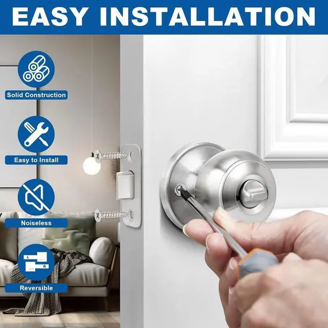 EASY INSTALLATION: All door knobs are reversible and can be installed left-handed or right-handed. Privacy door knobs come with all accessories and included installation instructions to help you complete the simple installation of the door knobs lock in less time. Each of door knob is packaged separately to avoid scratches caused by collisions during transit