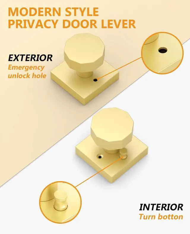 Enhanced Security: Elevate your home security with our meticulously crafted privacy gold door knob. Engineered with precision, our gold door handles boasts a state-of-the-art locking mechanism designed to withstand tampering and unauthorized entry attempts. The solid construction and reliable operation ensure that once locked, your door remains firmly sealed, deterring potential intruders and safeguarding your property and loved ones.