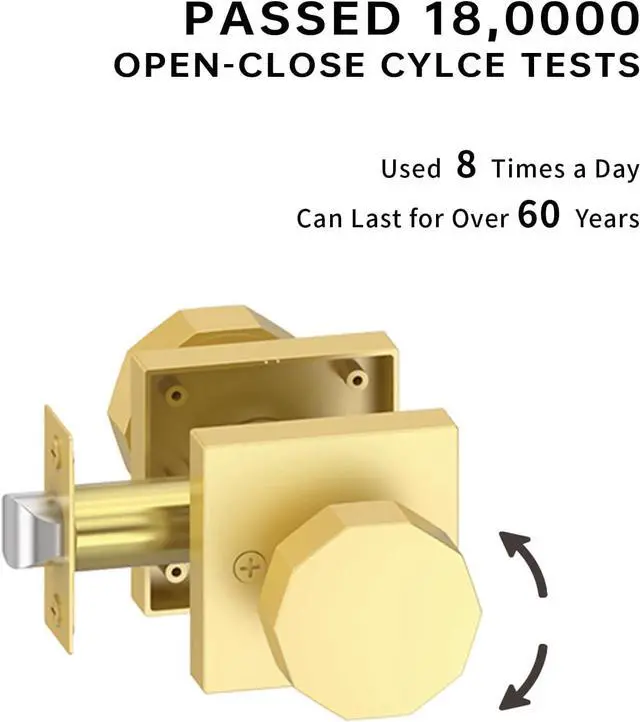 Designed to Impress: Our door handle boast exceptional quality, meticulously crafted from premium materials to exude durability and reliability in every detail. Whether it' s the smooth finish, sturdy construction, or seamless operation, our interior door handle are a testament to our commitment to excellence. Elevate your space with satin brass door knob with lock that not only provide security but also add a touch of sophistication to your doors.