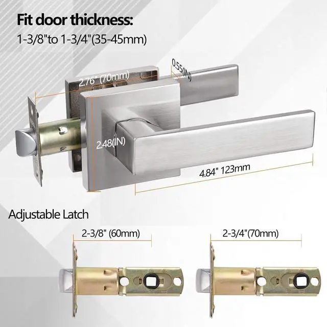 AdjustableAdjustable Backset: 60mm (2-3/8" ) to 70mm (2-3/4" ). Its designed to fit all standard doors between 1-3/8" and 1-3/4" in thickness.