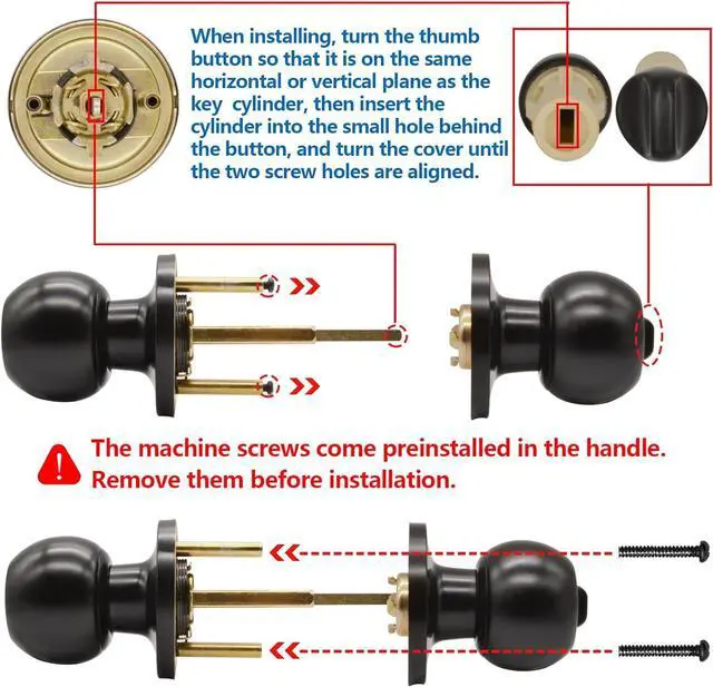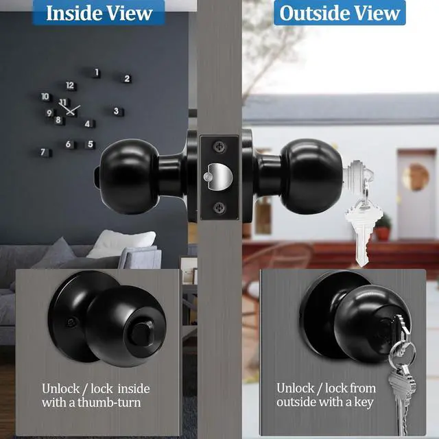 Durable & Secure: All metal construction with matte black finish that' s sturdy and rust-resistant, and the electroplated paint finish that gives you the perfect tactile feel and an easy-to-grip door handleset. Entry knobs has a key lock on the exterior and a thumbturn on the inside, can be locked or unlocked from either side of the door, providing you with the security you deserve. use them for your entry doors, front doors, interior locking doors and other privacy needs.