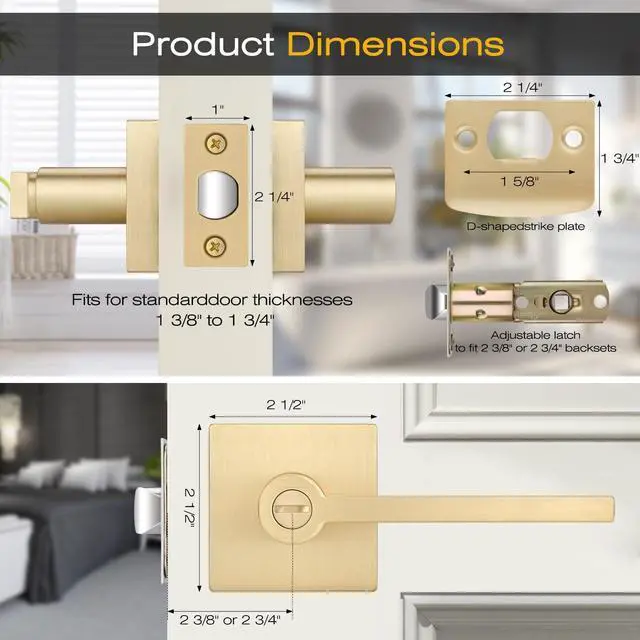 [Durable & Chic Design] - Uniquely crafted square-shaped door lever with heavy duty constructions, made of high quality zinc alloy and stainless steel, gold finished, modern square door lock confirmed with ANSI Grade 3 Security, Exceeds 200, 000 cycles. Wear-resistant and anti-corrosion, well-engineered and built to last, due to their perfect design and high quality