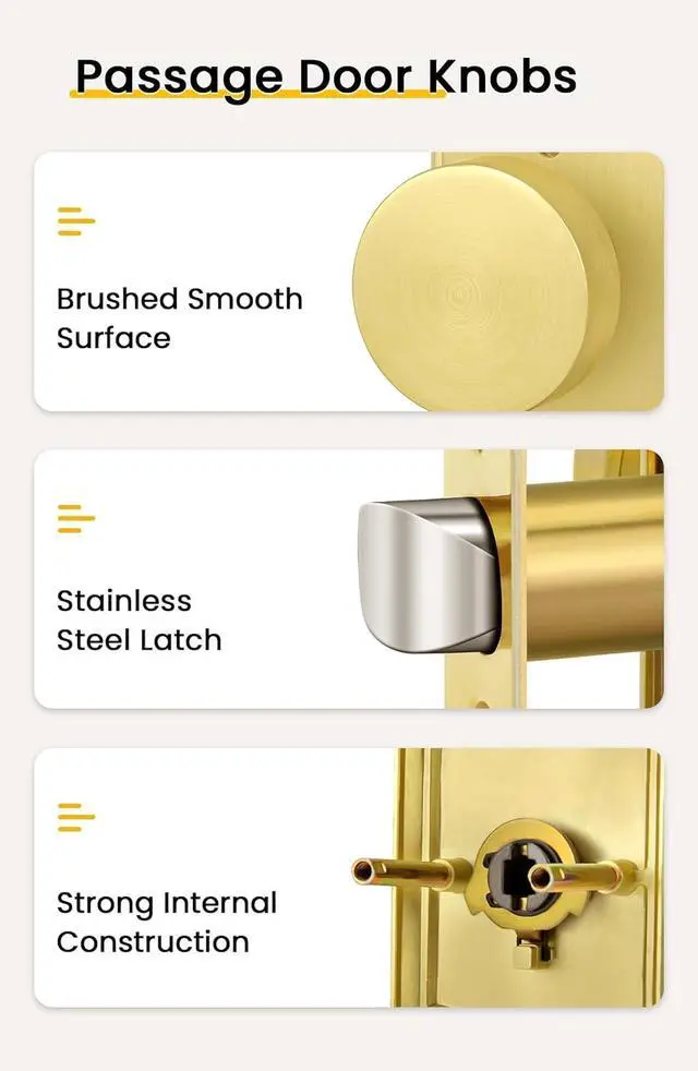 DIY-Friendly Installs in Minutes Installing this gold passage door knob is a breezeno special tools or handyman needed. Whether you' re updating old hardware or finishing a remodel, this set is designed to fit standard interior doors and enhance your home instantly.
