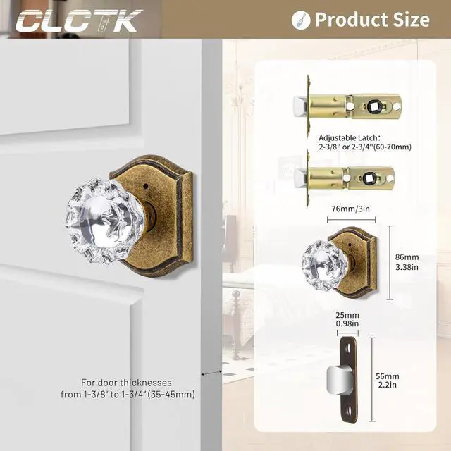 ApplicationThe crystal door knobs can be locked using the thumb button function from inside, and be unlocked from the outside with Allen key in emergency. Ideal for bathroom/bedroom