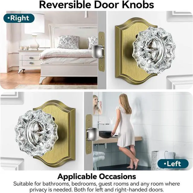 Easy Installation Only need a screwdriver, you can easily install the glass crystal door knob set according to the instructions included in the package. Antique brass crystal interior door knobs fit pre-existing holes perfectly, work with both replacement and new door.