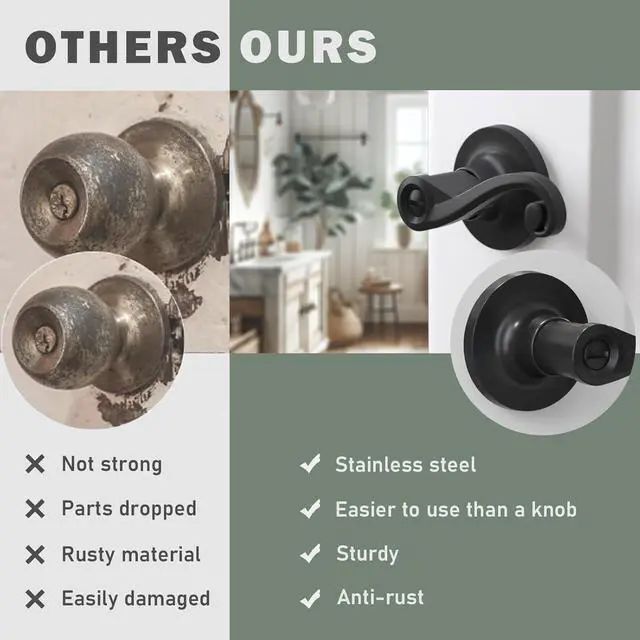 PRIVACY FUNCTION: The privacy door lock can be locked by twisting the button inside and opened outside in emergency WITHOUT keys (use a coin or screwdriver). Interior door handle provides excellent security and privacy and is commonly used in areas such as guest rooms, bedrooms, bathrooms, interior locking doors and other privacy needs