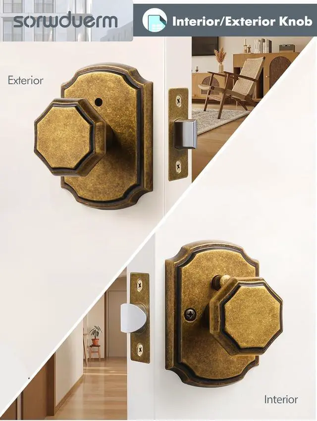 MaterialDoor Knob Made of Heavy-Duty Zinc Alloy, Advanced Electroplating Crafted in Luxurious Antique Brass, They Look Very Shiny and Gorgeous. Add a Touch of Luxury to Your Home