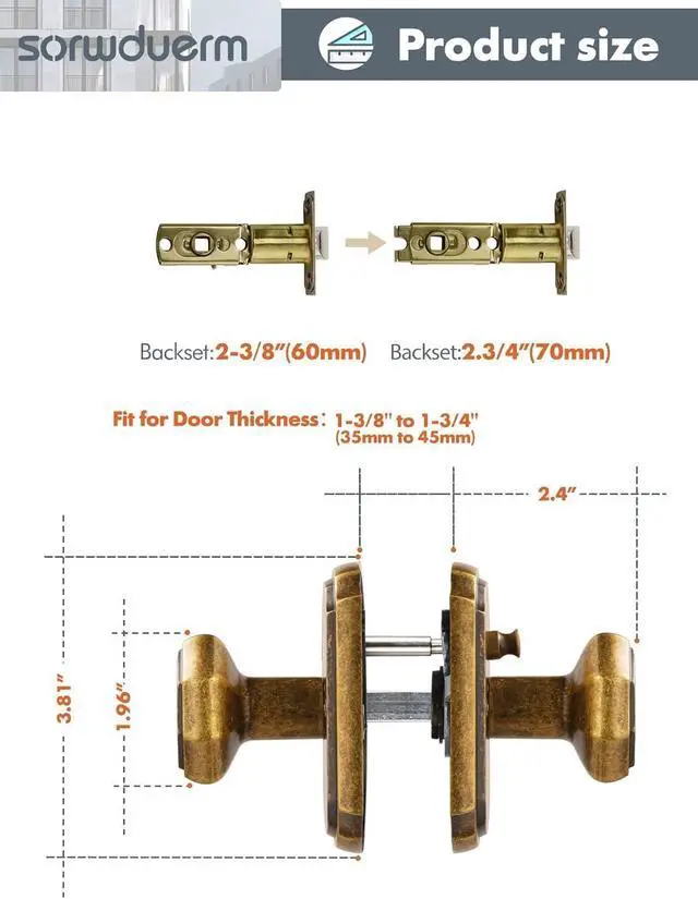 Adjustable LatchLatch Can Be Adjusted to 2-3/8 or 2-3/4 Inch, Fit all Doors 1-3/8 to 1-3/4 Thickness
