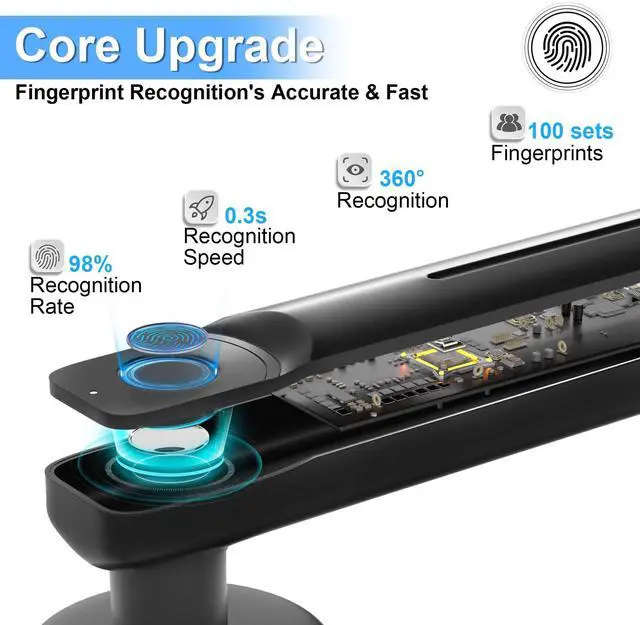 Fingerprint sensor: 508 DPI fingerprint sensor module, 360° fingerprint reading is accurate and fast, supports storage of up to 100 sets of fingerprints, and the recognition rate exceeds 98% within 0.5 seconds.