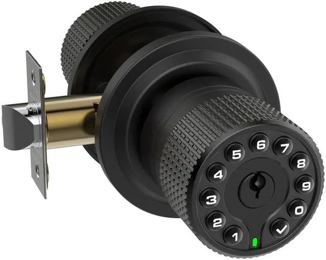 This keypad door knob offers passcode or key to access. 1 master code and 50 user codes.Access codes can be 1 - 15 digit in length.