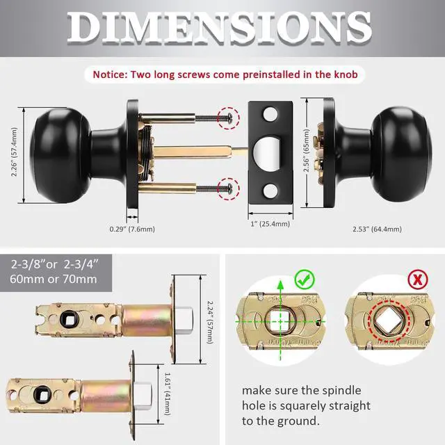 --The door knobs are made of heavy duty steel rack and cam mechanism, it can provide long lifetime, and Conformed with ANSI Grade 3 Exceeds 200,000 cyles and 5 pins brass tumbler cylinder.