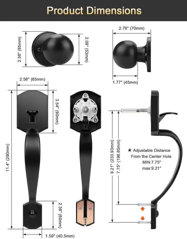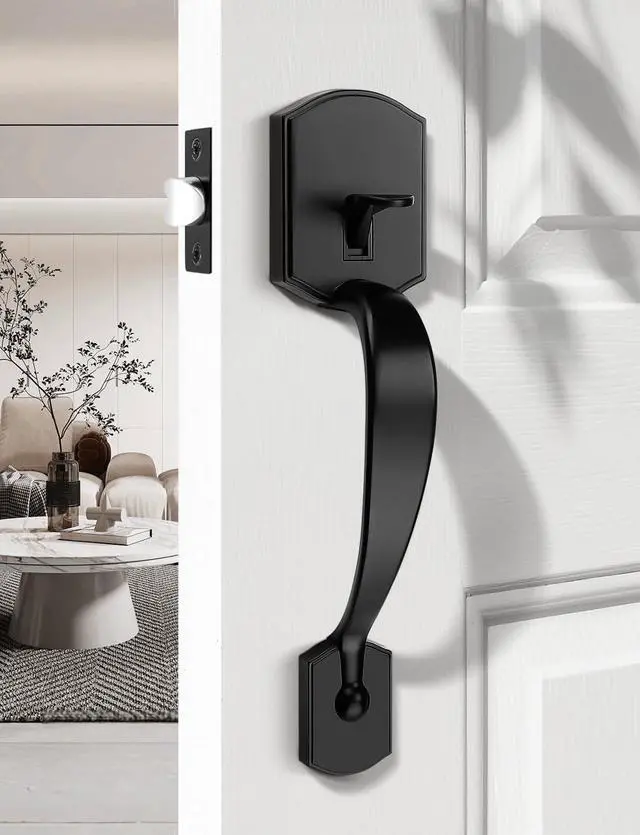 Upgraded lever handle with a grooved design ensure the front door handle set's durability and resistance to breakage over time