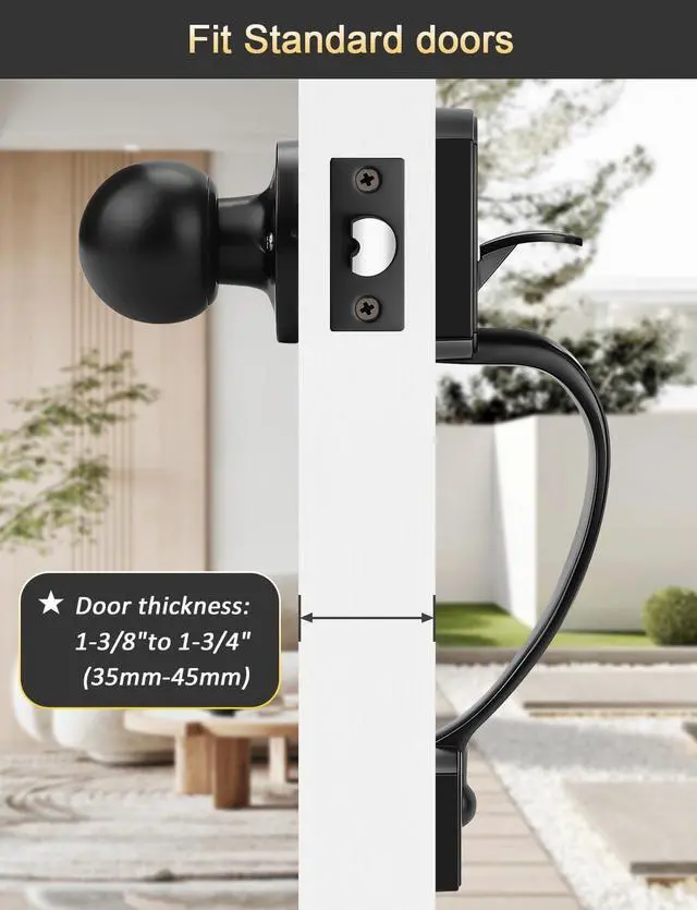 The door lock set fits most standard-sized doors ranging from 1-3/8 inch or 1-3/4 inch in thickness.