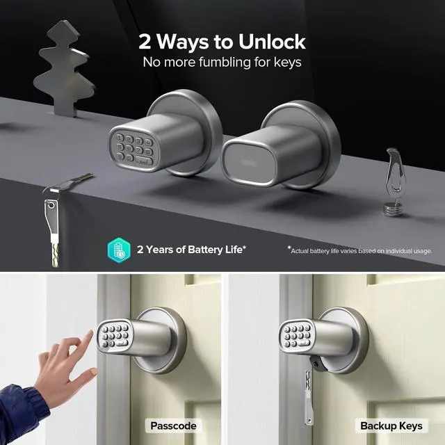| Keypad, Key | All above, Voice, App, Remote | Fingerprint, Keypad, Key | All above, Voice, App, Remote | Fingerprint, Keypad, Key |