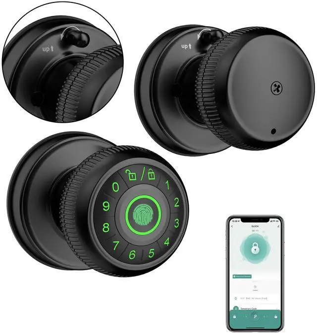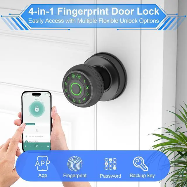 • 4-in-1 Ultimate Unlocking Options: Enjoy easy access to your home with a smartphone app, fingerprint scan, numeric code, or traditional key. The finger print door knob provides peace of mind with its reliable security features.
