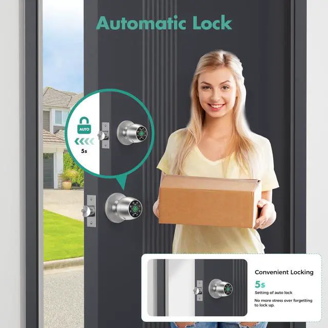 Fingerprint Door LockFingerprint and Keypad Input Smart Door knob, App Controlled Biometric Door Lock, Keyless Entry, Bedroom, Office, Hotel, Apartment Auto Door knob (Silver) -HL-4