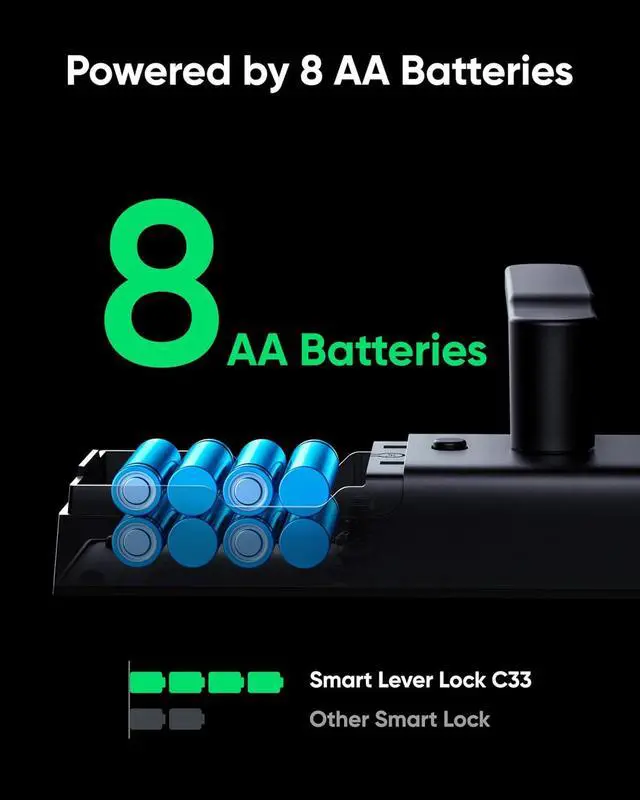 Powered by 8 AA Batteries: Provide reliable and consistent power to operate the lock and its electronic components.