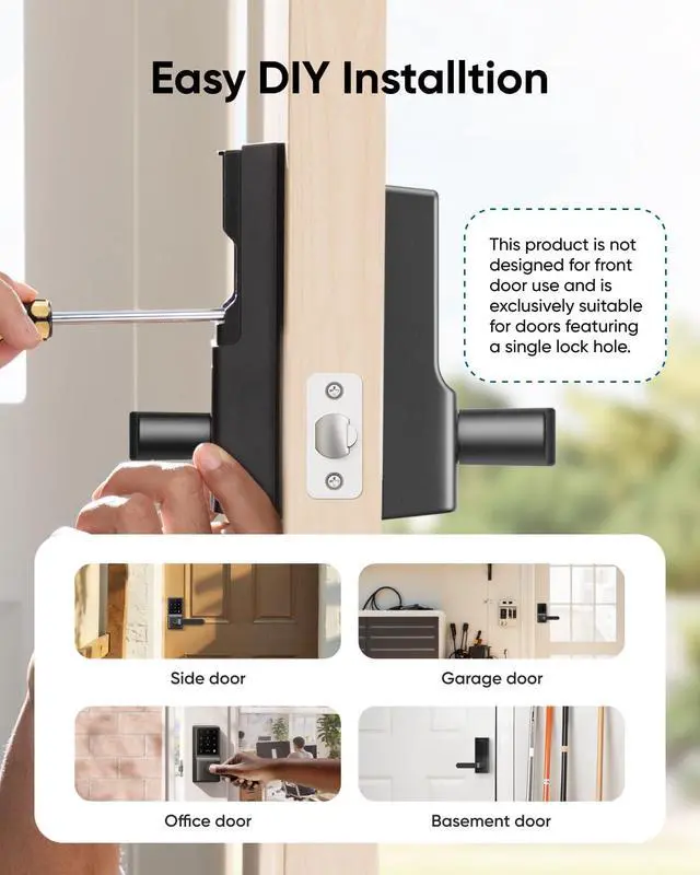 eufy Smart Lock C33, Keypad Door Lock with Handle, Fingerprint Door Knob, Keyless Entry Door Lock for Front Door and Bedrooms, Electronic Deadbolt, Wi-Fi, Remote App Control, IP53 Waterproof, Black