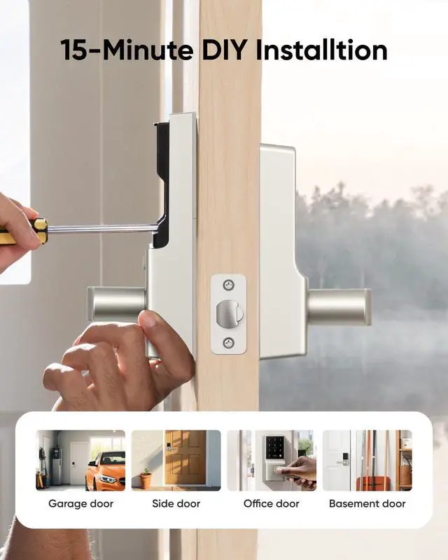 eufy Smart Lock C33, Keypad Door Lock with Handle, Fingerprint Door Knob, Keyless Entry Door Lock for Front Door and Bedrooms, Electronic Deadbolt, Wi-Fi, Remote App Control, IP53 Waterproof, Nickel