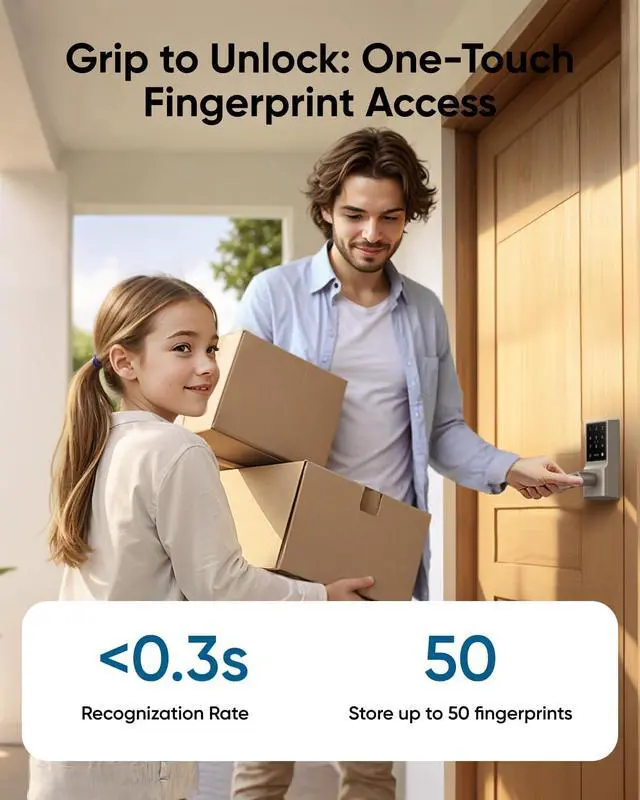 Seamless Fingerprint Recognition with Handle Grip: Unlock instantly with advanced biometric technology that learns and adapts to your usage. Effortless access for every family member, including parents and children.