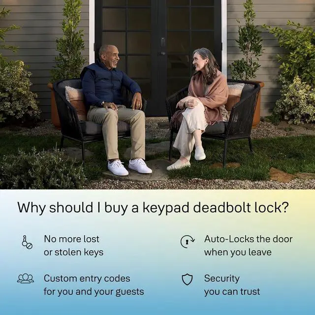 Key-free entry for all: Create and store up to 20 entry codes from your lock so friends, family, housemates, and trusted individuals can have secure access when they need it, even if they forget their key.