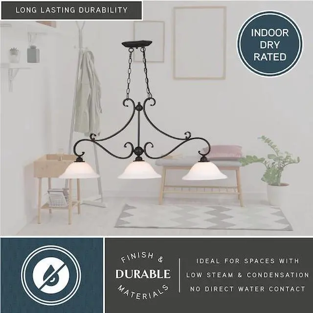 - Dry rated; for use in kitchen, bar area, pool table, kitchen island, dining room, or any other area of your home