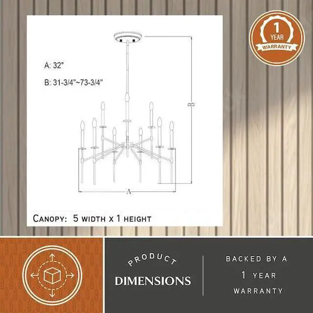 - Uses 9 x 60 watt E12 candelabra base bulbs (not included); led compatible