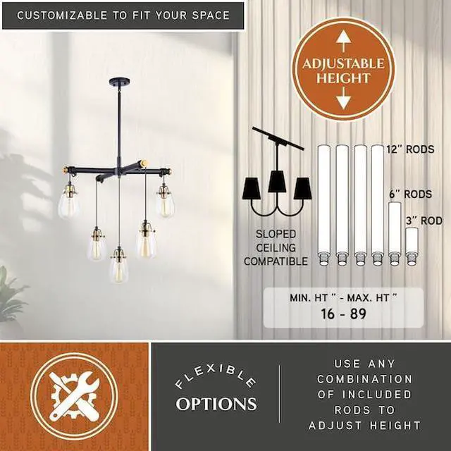 Kassidy 5L Chandelier Black/ Brass. This item has been restricted from sale in the following state (s): []