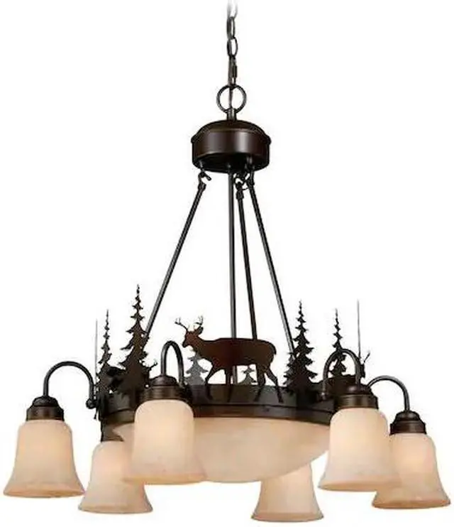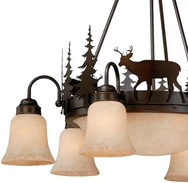 Evoking the spirit of the wilderness, this rustic themed light is clad in a burnished bronze finish and features silhouetted deer imagery atop glowing amber flake glass. The classic form of this lamp makes it a great choice for a vacation lodge, cabin or a suburban home - it will complement a variety of home styles: anywhere you want to bring an element of nature. Medium screw base lamping provides maximum light output, and flexibility in bulb choice.