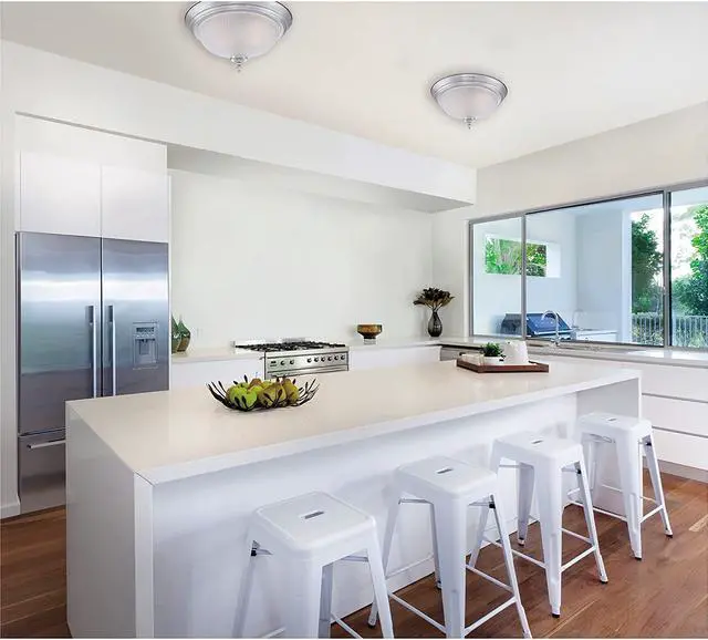 With an elegant Brushed Nickel finish and frosted Swirl glass, this Westinghouse Two-Light Ceiling fixture adds a tasteful touch to any decor. The Brushed Nickel base complements the frosted Swirl glass and creates inviting ambient light. The fixture mounts Flush, allowing it to work well with low and high ceilings alike. Perfect for an entryway, dining room, bedroom, and hallways. No matter where you place it, you will enjoy the sleek look of this fixture. The fixture is 6-5/8 inches high by 13 inches in diameter and comes in a convenient 2-pack box. Each fixture uses two medium-base light bulbs, 60-watt maximum (not included). this indoor fixture is ETL/cetl listed for safety. It is backed by a five-year limited manufacturers warranty against defects in materials and workmanship. Westinghouse is a global brand with a simple philosophy: make life easier for everyone who buys its products. Westinghouse products are designed for exceptional quality, reliability, and functionality. Product reference Number 63444.
