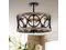 Warehouse of Tiffany CM135/3 Shacer Matte Black/Imitation Wood Grain 3-Light Chandelier, Brown