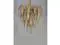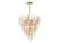 California Proposition 65: This product contains a chemical known to the State of California to cause birth defects or other reproductive harm. Hand-formed glass petals of Clear and Champagne-tint suspend from a tiered frame of gold and accented with petals of solid metal finished in Gold Leaf. Numerous candelabra sockets are strategically placed within the fixture to create glimmer and elegance to this majestic collection.