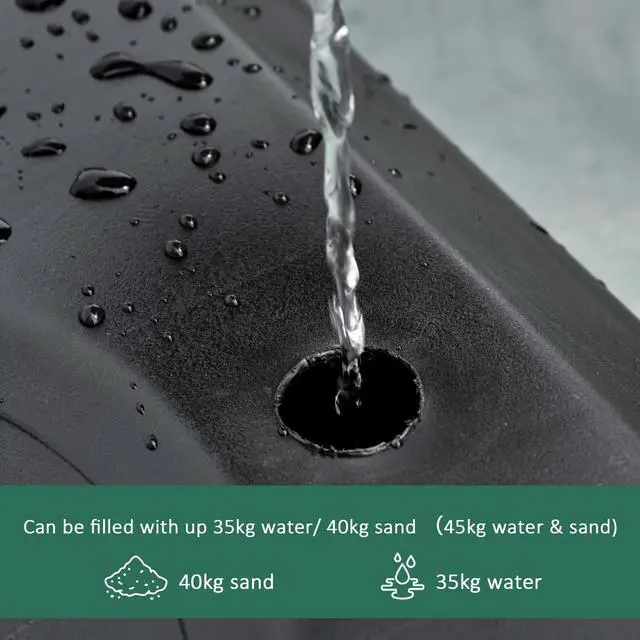 Stable Base: This outdoor basketball hoop will stay stable while you play. The bottom base is made with HDPE material and can be filled with 77 lbs of water, 88 lbs of sand, or maximum 99 lbs of water and sand to keep the basketball hoop to standing straight. The base includes a ball holder to keep your basketball in place.