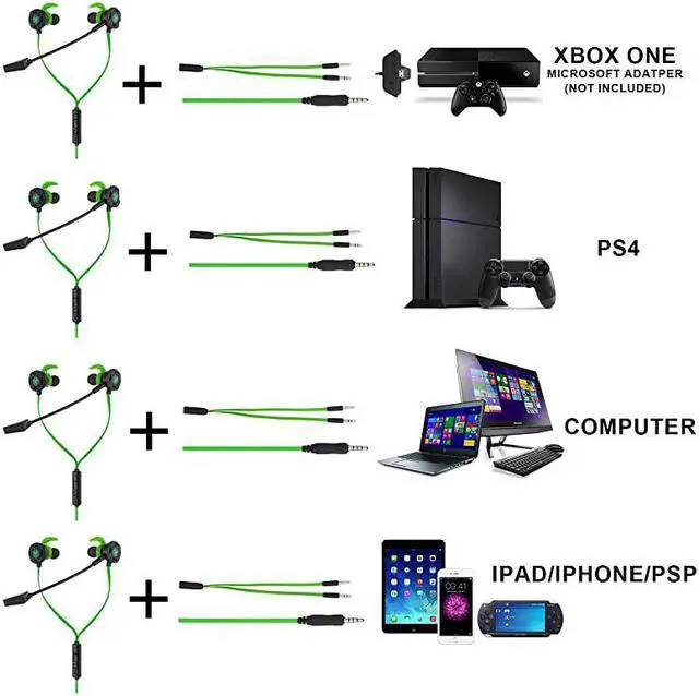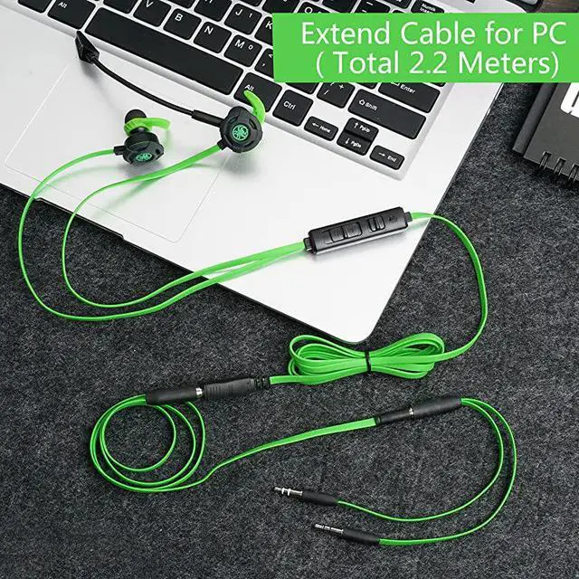 ***** **********Best Quality Guranteed. *****Widely UsedWith the Extension cord, Desktop Adapter and Mic, this Gaming Earphone suitable for Phone / PC / Laptop / Tablet / PS4 / Xbox one. *****Comfortable and Light Weight Memory Foam Earbuds for Continuous Hours of Comfortable Use, allowing you totally immense into your games without wearing the hot and heavy gaming headphones. *****Excellent Bass Stereo Sound & Noise ReductionNoise-Isolating Design creates a superior fit to block out ambient noise and distractions, provide you with a high quality sound and enjoy the virtual gaming world. *****ENOUGH CABLE LENGTH Over 7 feet! Which for a video gamer this is perfect, no need to sit right in front of the TV.