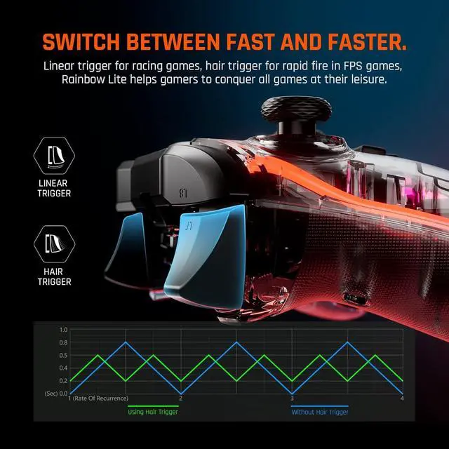 • 16 Mechanical Buttons BIGBIG WON C2 Pro is the first gaming controller on the market with fully mechanical buttons - the mechanical micro button trigger travel is only 0.3mm, with the same feel and speed as a gaming mouse. Compared to other silicone buttons, the C2 Pro is 240% more responsive. For FPS Gamers, C2 Pro controller is the right choice for you.What's more, wireless controller supports dual wireless/wired modes and multiple platforms for connectivity.