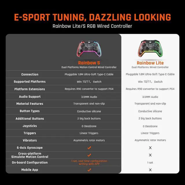 • Device Compatibility & 4 Mechanical Custom Buttons BIGBIG WON Switch Pro Controller is fully compatible with devices Nintendo Switch/Lite/OLED, iOS, Android, PC and Windows 10/11; 4 expansion Buttons for advanced operation - 2 back Buttons + 2 additional shoulder Buttons. Custom programmable for various functions - such as Key mapping, turbo, macros programminge etc.
