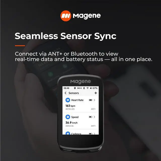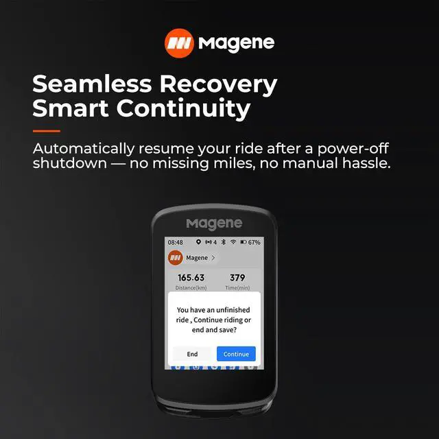 • Smart Riding Assistant - Empower Your Journey: Easily control your Magene L508 and L308 tail lights without your phone. Enjoy smart interactions like auto front light activation at 10km/h. Get reminders for hydration, energy, and return times