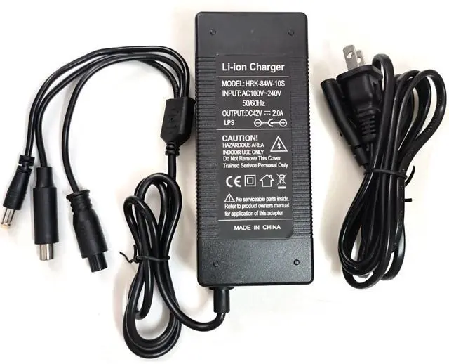 • Specification: 42V Charger for 36V Lithium Battery Pack Power Supply / Input: 100V-240V AC ~50/60Hz / Output: 42V, 2A Max / 8.5 ft Long Cord