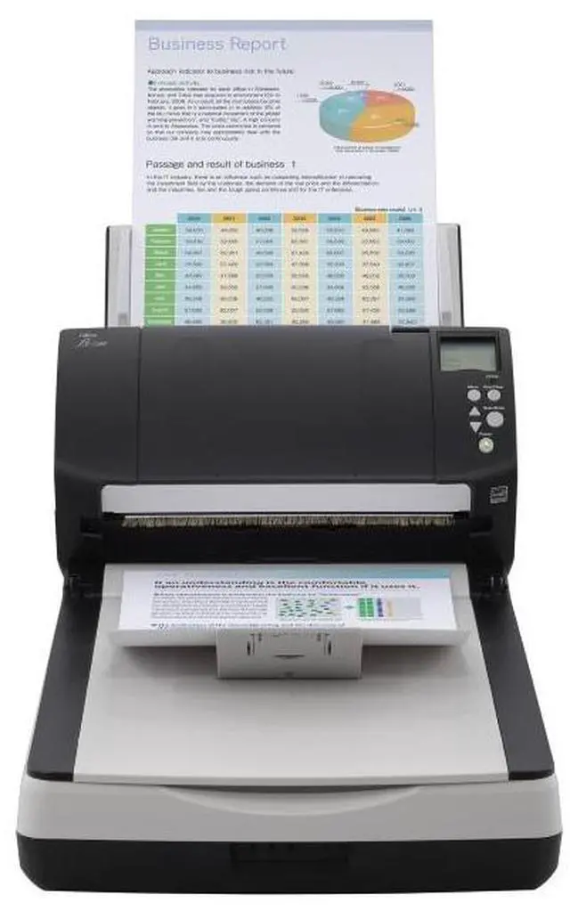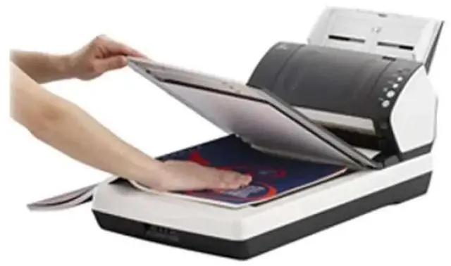 The Fujitsu fi-7280 compact-sized device has unmatched performance, scanning letter-sized documents at 80 ppm, and is capable of loading up to 80 sheets at a time, maximizing scan operator efficiency. The flatbed provides additional utility and allows for the scanning of very thick documents and bound periodicals.