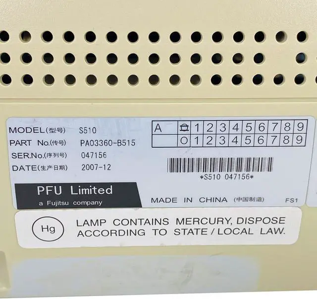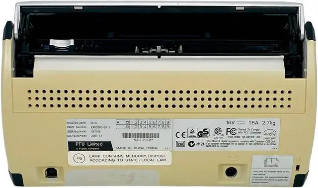 • Box Contents: FUJITSU ScanSnap S510 Document Scanner, AC DC Adapter, USB Cable.