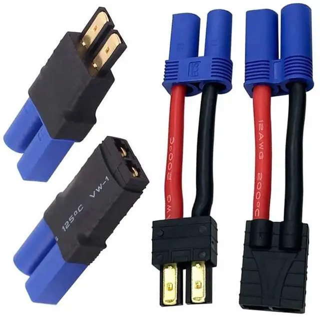 2 Pairs RC LiPo Battery Connector Adapter Compatible with TRX Traxxas Lipo Battery Plug to EC5 Male Female on ESC Charger