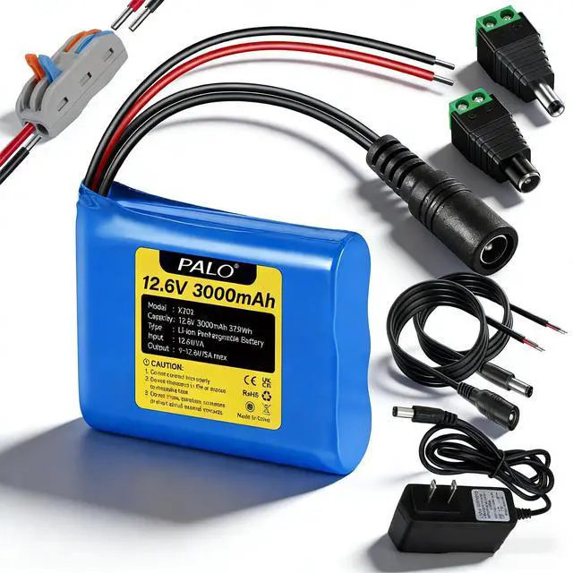 Premium External Battery Pack: This portable 3000mAh lithium ion battery pack with DC 9.0-12.6V/5A (Max) output, the input is DC12.6V/1A. It comes with 12.6V/1A Charger, DC power connector and DC power pigtail cable, great choice to do the DIY projects.
